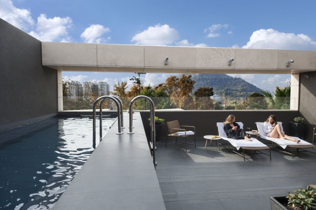 The rooftop pool and bar offer stunning Andes views. It’s one of the best places in Santiago to combine comfort with scenery.